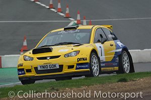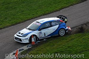 the times. The first driver to suffer this was competitor six, Nigel Mummery, in an ex WRC prepared Ford Focus. Out on the rally stage at the start, Mummery lost the rear coming down the hill, spinning over the tyre kerbs and stopping in a puddle. The recovery time would leave him well down the order, whilst John Stone, Chris West and Mark Kelly completed the first run as the top three. Stage two would see the layout exactly the same and the top three finished up in the same order, as John Stone pulled out a small margin, whilst West and Kelly were split by one second. Stone