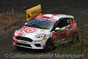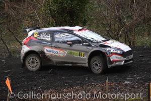 In Penmachno Creighton pushed the Fiesta to its limits, breaking the timing beam at 12:50.3, 0:08.6 quicker than Finlay Retson and therefore took control of the Cambrian Rally for the Junior BRC field. Finlay Retson and Rhys Stoneman started to take control of second place and created a margin over Eddie Lewis, who was now in a fight for the final podium place with Irish crew David and Darragh Kelly. Stage 3 unfortunately saw the class’ only retiree as Brain Brady dropped out of the rally in his Fiesta R2 after originally running in fourth.